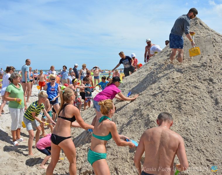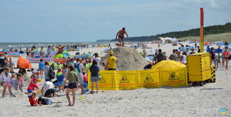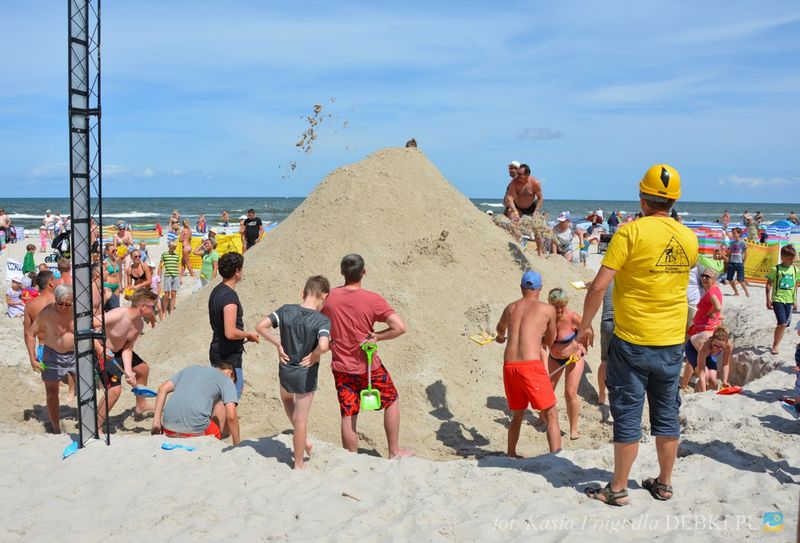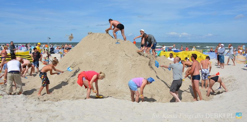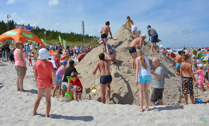Wczasowicze wypoczywający w Dębkach bardzo aktywnie włączyli się do budowania kopca z plażowego piachu. Po 1,5 h. zabawy w budowniczych, ekipa usypała górę piachu wysokości 283 cm. W klasyfikacji generalnej Dębki zajmują czwarte miejsce. Jak na razie prowadzi Pogorzelica z wynikiem 309 cm.
