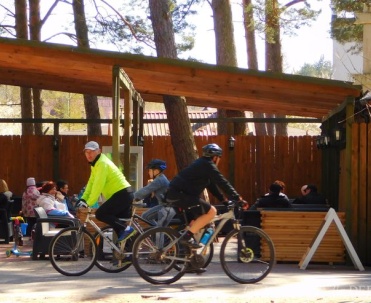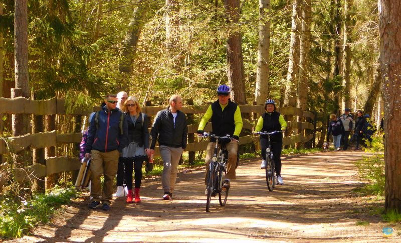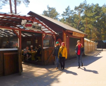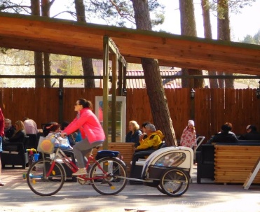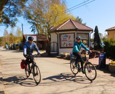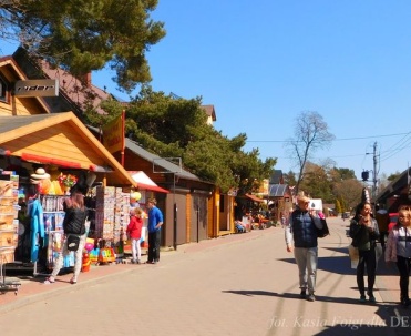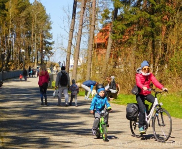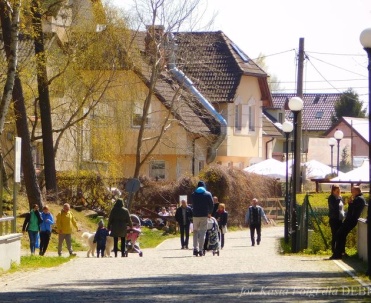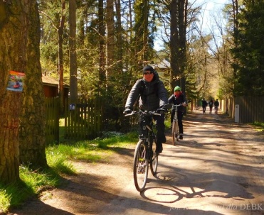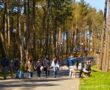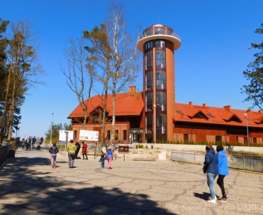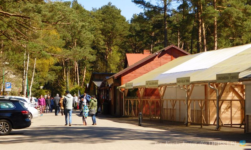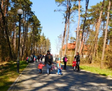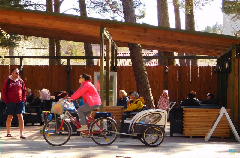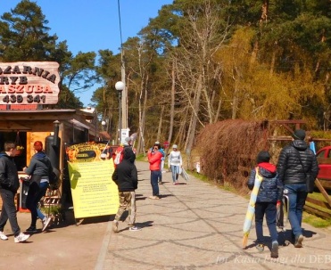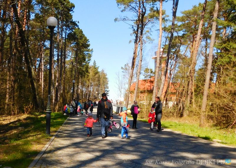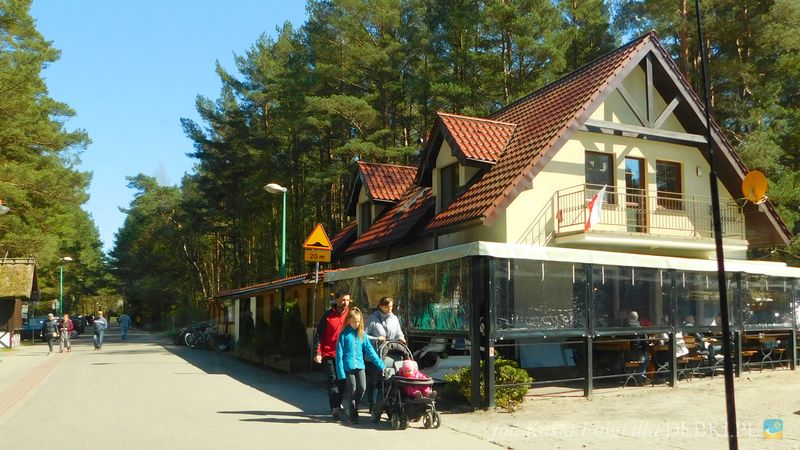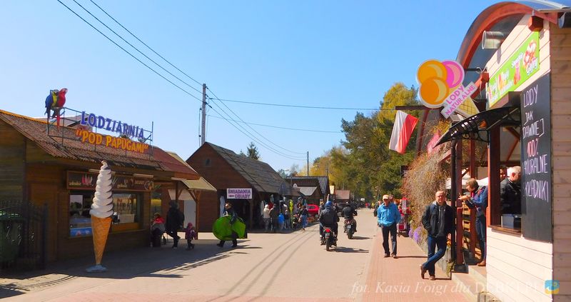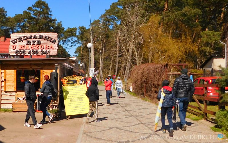 Piękna uliczka w Dębkach i turyści